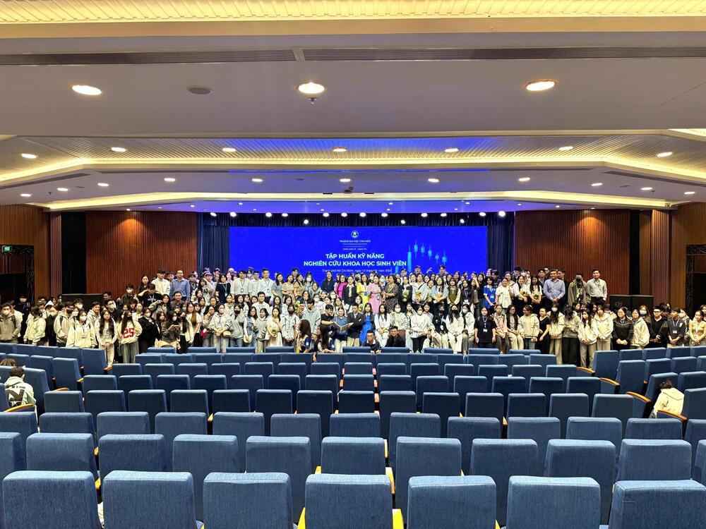 Sáng ngày 12/01/2026, tại Hội trường Trần Hưng Đạo – HungHau Campus, Khoa Kinh tế – Quản trị đã tổ chức thành công buổi Tập huấn Nghiên cứu Khoa học (NCKH) Sinh viên. Sự kiện đã thu hút hơn 300 sinh viên tham gia với tinh thần nhiệt huyết, đánh dấu bước khởi đầu mạnh mẽ cho phong trào học thuật trong năm mới.