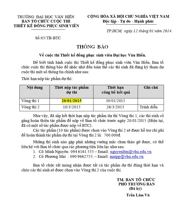 THÔNG BÁO VỀ CUỘC THI THIẾT KẾ ĐỒNG PHỤC SINH VIÊN ĐẠI HỌC VĂN HIẾN.