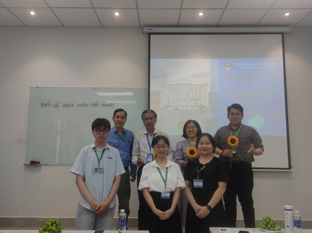 Vào ngày 24/9/2025, tại Phòng HEC507, cơ sở HungHau Campus, Khoa Kinh tế - Quản trị, Trường Đại học Văn Hiến đã tổ chức một buổi báo cáo khóa luận tốt nghiệp cuối khóa đầy ấn tượng. Sự kiện này không chỉ là dịp để các bạn sinh viên thể hiện những thành quả từ quá trình học tập và thực tập, mà còn là bước ngoặt quan trọng trong hành trình trưởng thành và phát triển nghề nghiệp của các bạn.