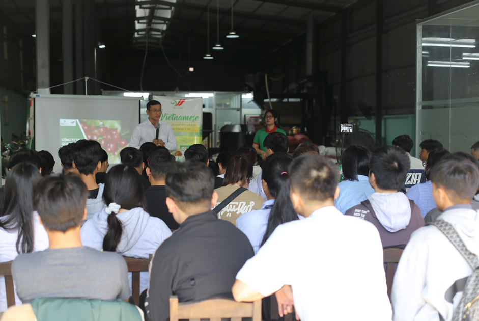 Sau khoảng thời gian chia sẽ, các bạn sinh viên VHU tiếp tục được chuyên viên và quản lý công ty dẫn đi tham quan cơ sở sản xuất, quy trình sản xuất và phân phối cà phê.